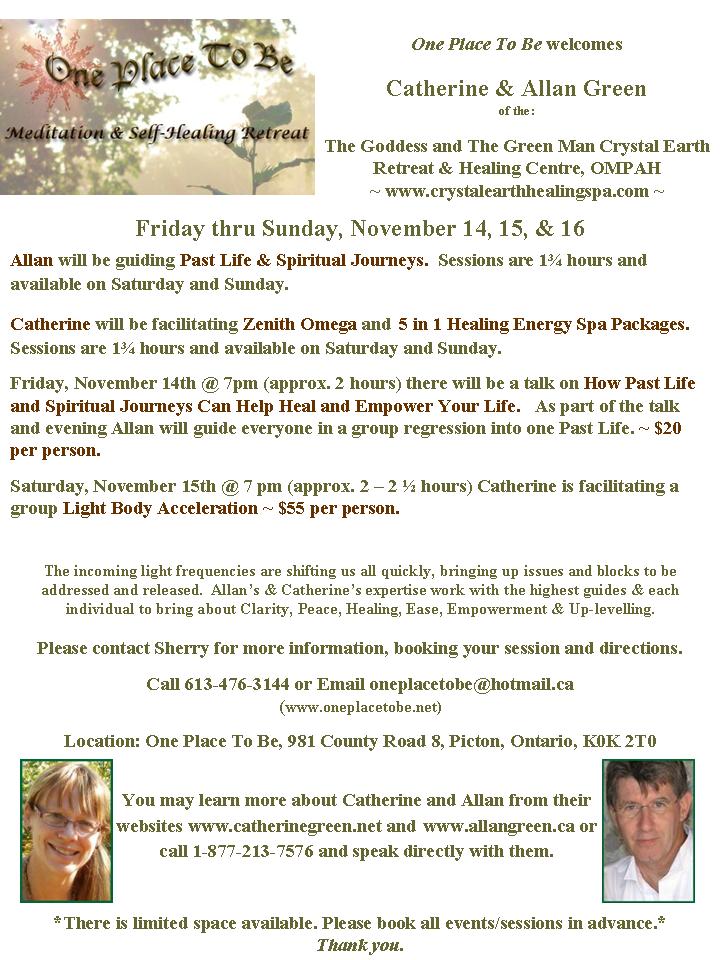 The adventures at One Place To Be this past weekend were incredible! Several friends, along with ourselves, benefited greatly from the offerings of Allan and Catherine Green. Self-discovery and self-healing served to enhance confidence, joy and understanding for our journey! Much love and gratitude to Catherine and Allan for sharing their gifts! ♥